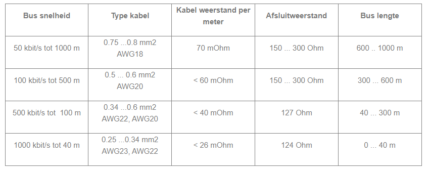 De kabel lengte is afhankelijk van de bautrate.