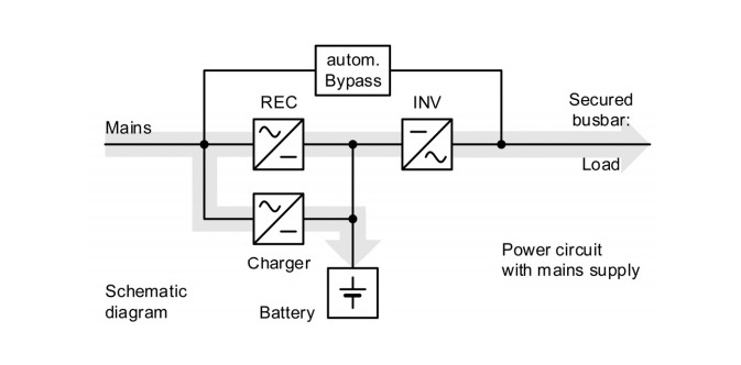 With the lag increased to 0.9, the power factor was taken into account for the demand for higher performance active consumers. The ECO and frequency inverter for operation mode highlights the requirements for a modern versatile UPS.