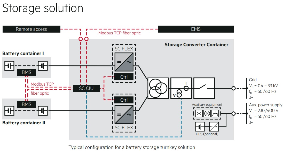 The system can also be provided as a turnkey solution including battery and medium voltage transformer.
