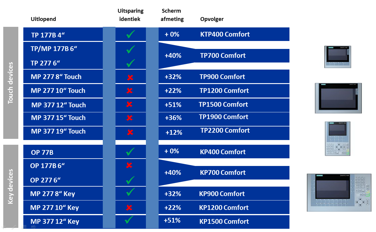 De Siemens HMI panels zijn te verdelen in 4 groepen; keypanels, touchpanels, key-touch panels en de mobile panels.