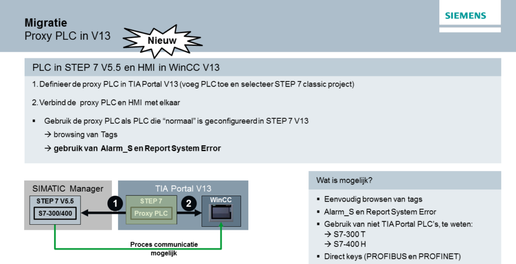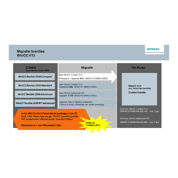De migratie kan ook een mooi moment zijn om over te stappen op de nieuwe TIA Portal software waar de HMI’s eenvoudig te migreren en te integreren zijn. Hier kan een starterpakket een mooie en voordelige opstap zijn om u klaar te maken voor de toekomst. De pakketten zijn uiteraard ook zeer geschikt voor nieuwe gebruikers.