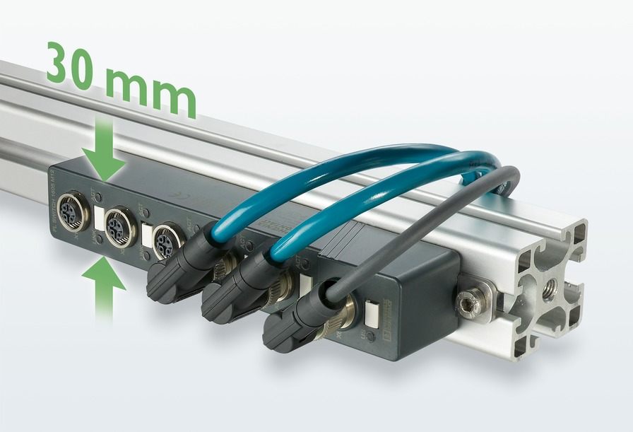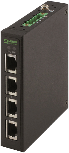 De Unmanaged Switch 1605 wordt gekenmerkt door een unieke smalle bouwvorm, beschermklasse IP67 en vijf M12-aansluitingen. Dankzij het brede temperatuurbereik is de switch heel geschikt voor toepassing in de machinebouw.