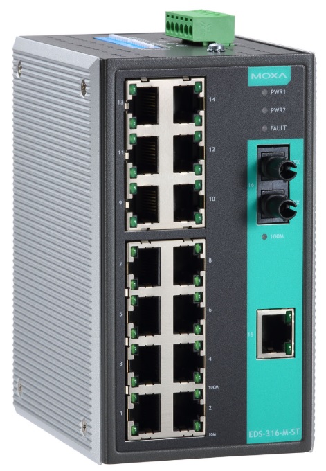 - Ports: 5 | 10/100: 4 | 100Fiber: 1 single-mode (15 km) | Temp.: -40˚ / 70˚C | Power: 10-30VDC | IP: 30 | Case: DIN Rail, Metal
