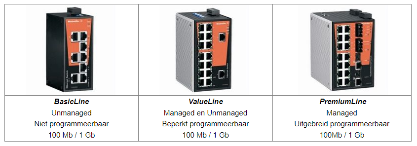 Modulaire configureerbare switches, voor Industrieel Fast Ethernet en Gigabit Ethernet netwerken.