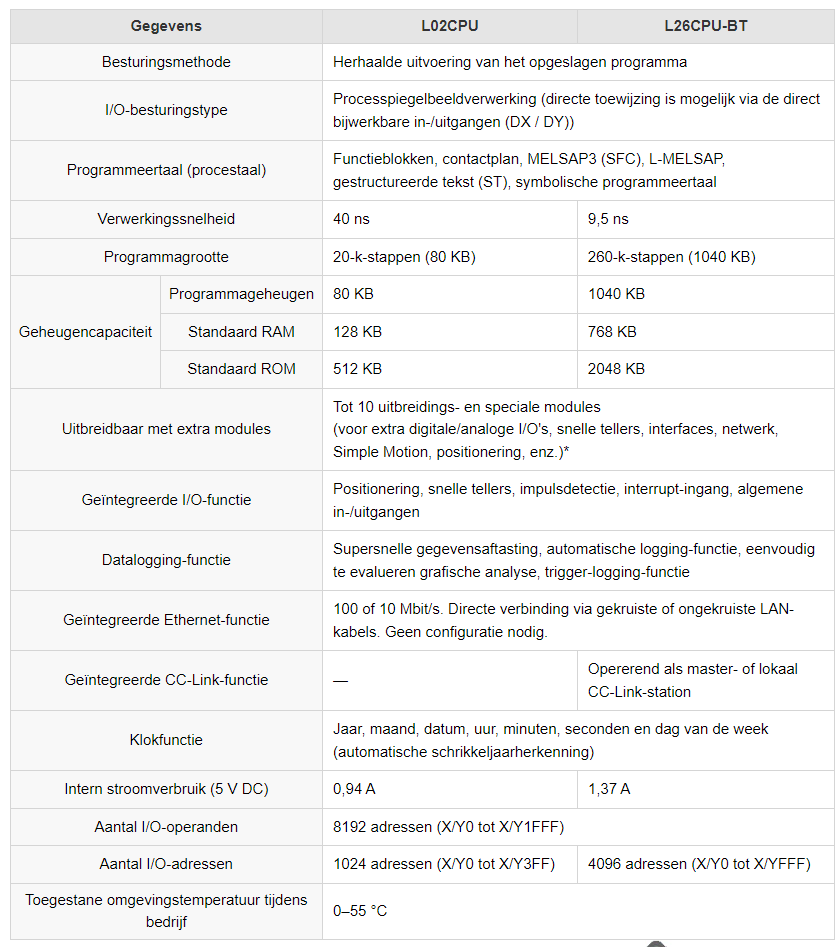 Alleen de High Performance Modellen zijn geschikt, basis modellen, Procesc CPU’s, Redundant CPU’s, Safety CPU’s, Universal Modellen en Remote I/O stations zijn niet compatibel.