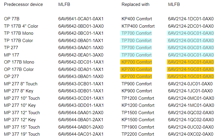 Conversie lijst HMI panelen